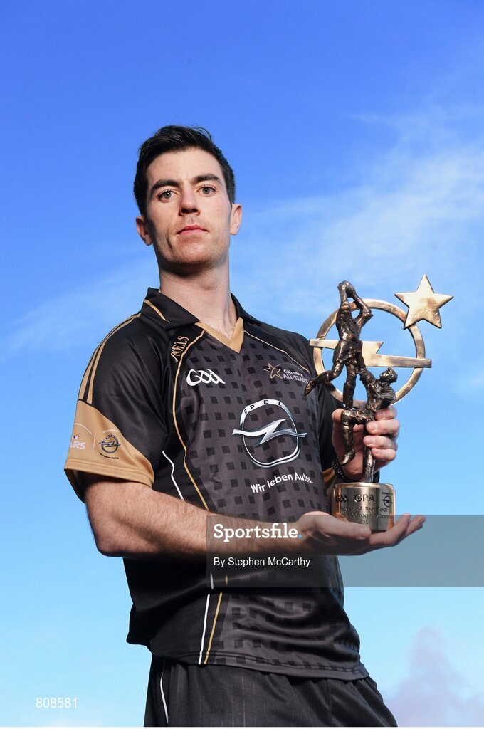 8 November 2013; Dublin footballer Michael Darragh Macauley with his 2013 GAA GPA All-Star Footballer of the Year award, at the GAA GPA All-Star Awards 2013, Sponsored by Opel. Croke Park, Dublin. Picture credit: Stephen McCarthy / SPORTSFILE
