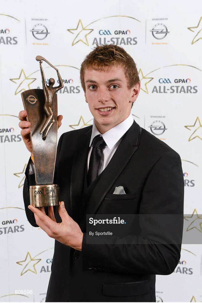 8 November 2013; Clare hurler David McInerney with his 2013 GAA GPA All-Star award, sponsored by Opel, at the 2013 GAA GPA All-Star awards in Croke Park, Dublin. Photo by Sportsfile