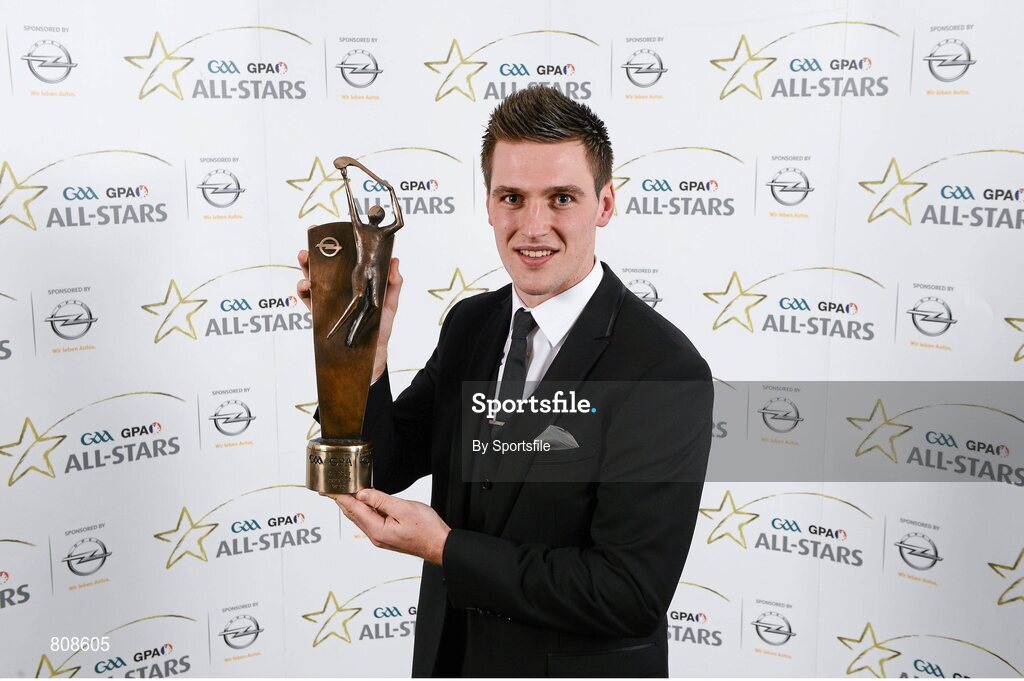 8 November 2013; Clare hurler Conor Ryan with his 2013 GAA GPA All-Star award, sponsored by Opel, at the 2013 GAA GPA All-Star awards in Croke Park, Dublin. Photo by Sportsfile