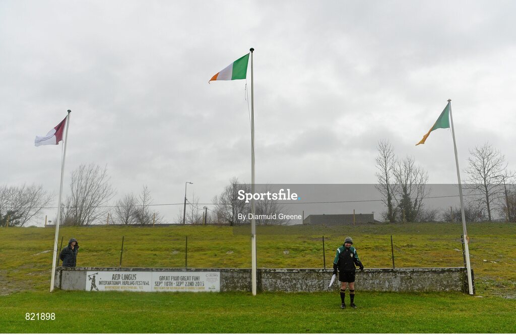 12 January 2014; Linesman Marty Parker, from Roscommon, and Pat McQueeney, member of the Leitrim backroom team, left, just before the start of the game. FBD League, Section B, Round 2, Galway v Leitrim, Duggan Park, Ballinasloe, Co. Galway. Picture credit: Diarmuid Greene / SPORTSFILE