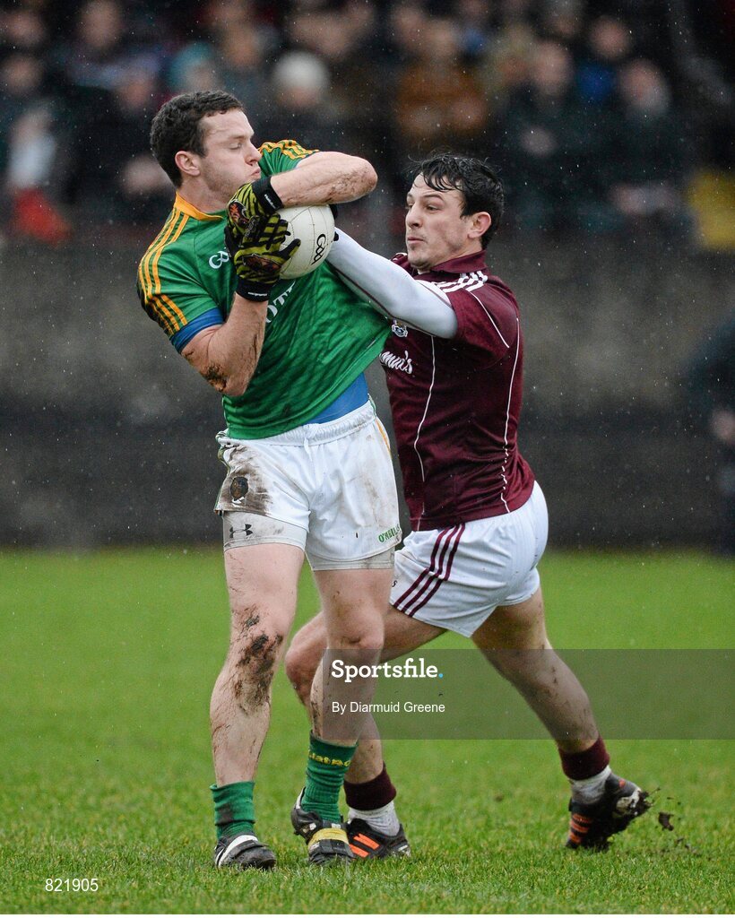 12 January 2014; Gary Reynolds, Leitrim, in action against Sean Armstrong, Galway. FBD League, Section B, Round 2, Galway v Leitrim, Duggan Park, Ballinasloe, Co. Galway. Picture credit: Diarmuid Greene / SPORTSFILE