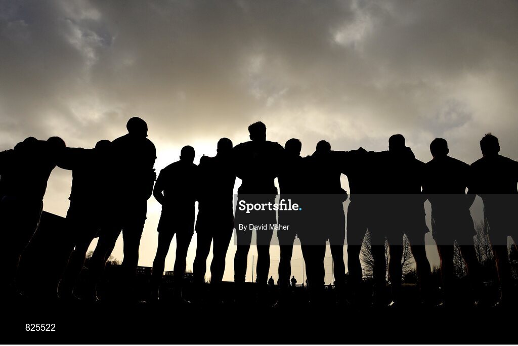 26 January 2014; The Leitrim team line up during the playing of the National Anthem. FBD League, Final, Leitrim v Roscommon. Páirc Sean Mac Diarmada, Carrick on Shannon, Co. Leitrim. Picture credit: David Maher / SPORTSFILE