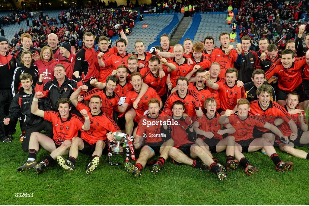 9 February 2014; The Truagh players celebrate with the cup after the game. AIB GAA Football All Ireland Intermediate Club Championship Final, Kiltane, Mayo v Truagh, Monaghan. Croke Park, Dublin. Photo by Sportsfile