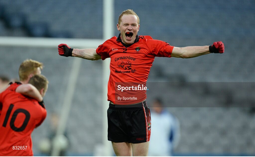 9 February 2014; John McCarron, Truagh, celebrates at the end of the game. AIB GAA Football All Ireland Intermediate Club Championship Final, Kiltane, Mayo v Truagh, Monaghan. Croke Park, Dublin. Photo by Sportsfile