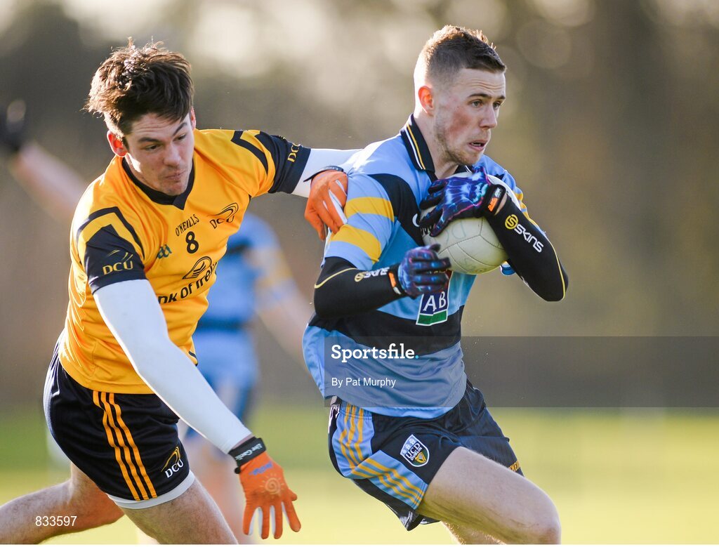 13 February 2014; Paul Mannion, University College Dublin, in action against Eoin O'Connor, Dublin City University. Irish Daily Mail HE GAA Sigerson Cup 2014, Quarter-Final, University College Dublin v Dublin City University, UCD, Belfield, Dublin. Picture credit: Pat Murphy / SPORTSFILE