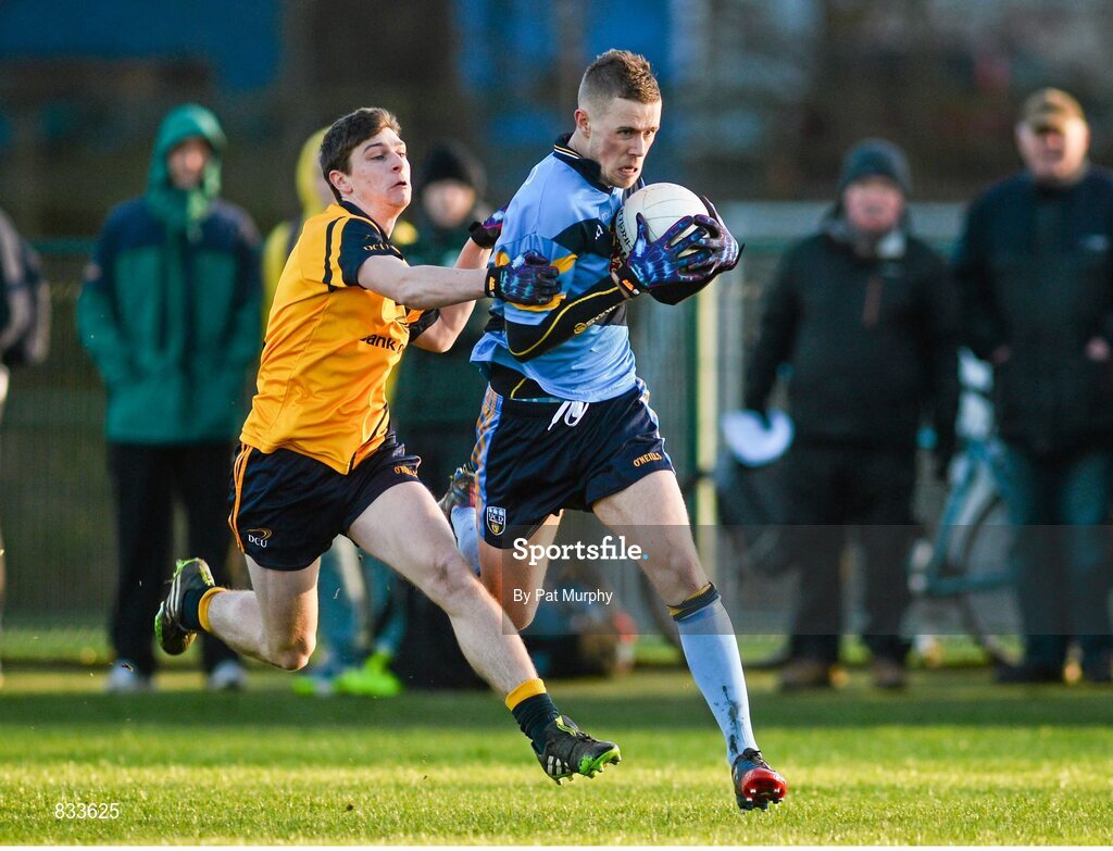 13 February 2014; Paul Mannion, University College Dublin, in action against Jack Smith, Dublin City University. Irish Daily Mail HE GAA Sigerson Cup 2014, Quarter-Final, University College Dublin v Dublin City University, UCD, Belfield, Dublin. Picture credit: Pat Murphy / SPORTSFILE