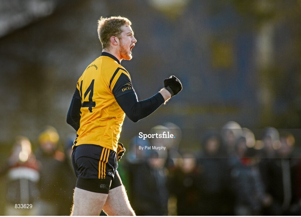 13 February 2014; Conor McGraynor, Dublin City University, celebrates after scoring a goal for his side. Irish Daily Mail HE GAA Sigerson Cup 2014, Quarter-Final, University College Dublin v Dublin City University, UCD, Belfield, Dublin. Picture credit: Pat Murphy / SPORTSFILE