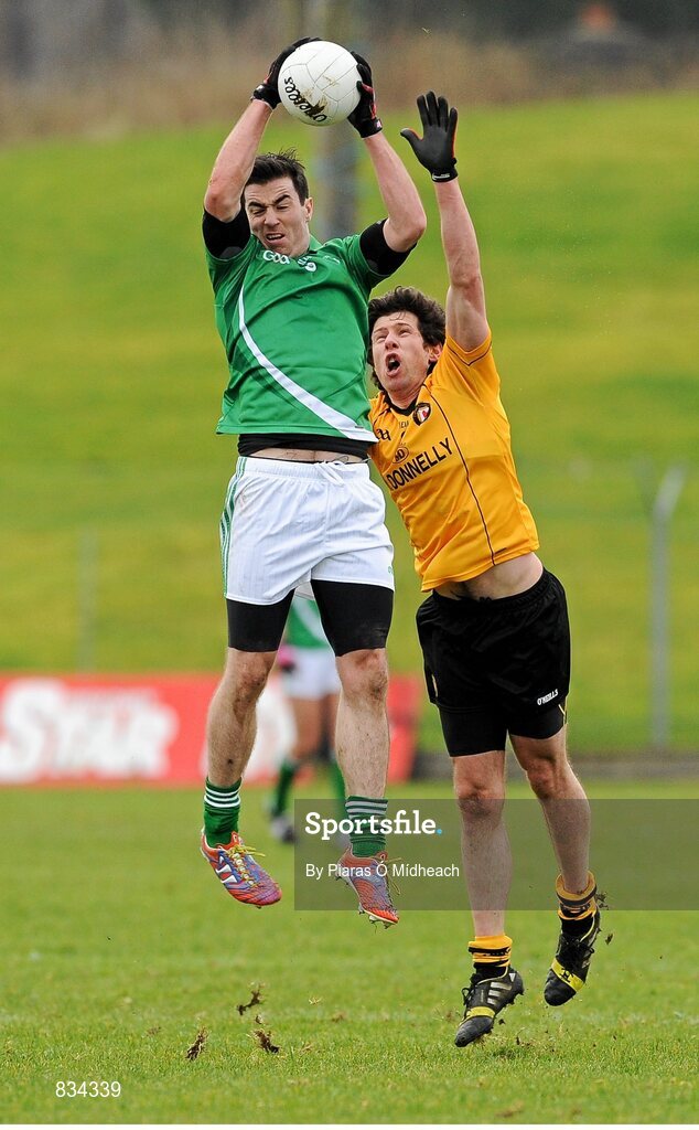 16 February 2014; Michael Darragh MacAuley, Leinster, in action against Seán Cavanagh, Ulster. M Donnelly Interprovincial Football Championship, Semi-Final, Leinster v Ulster, Páirc Táilteann, Navan, Co. Meath. Picture credit: Piaras Ó Mídheach / SPORTSFILE