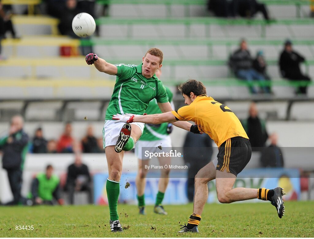 16 February 2014; Ciarán Kilkenny, Leinster, in action against Chrissy McKaigue, Ulster. M Donnelly Interprovincial Football Championship, Semi-Final, Leinster v Ulster, Páirc Táilteann, Navan, Co. Meath. Picture credit: Piaras Ó Mídheach / SPORTSFILE