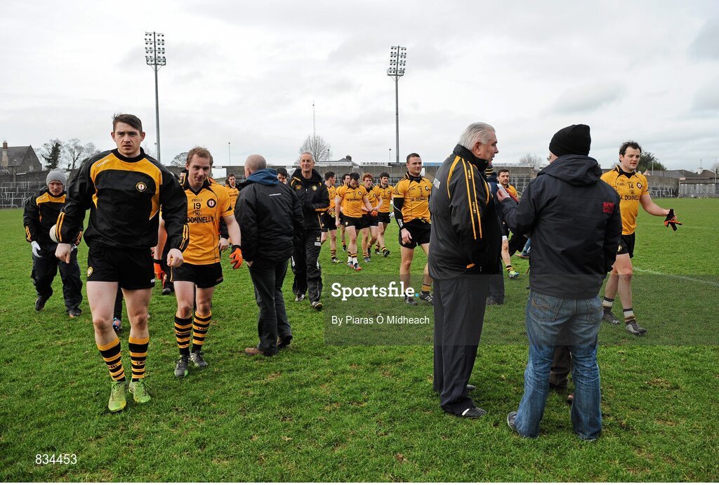 16 February 2014; Ulster manager Joe Kernan is interviewed after the game as his players leave the field. M Donnelly Interprovincial Football Championship, Semi-Final, Leinster v Ulster, Páirc Táilteann, Navan, Co. Meath. Picture credit: Piaras Ó Mídheach / SPORTSFILE