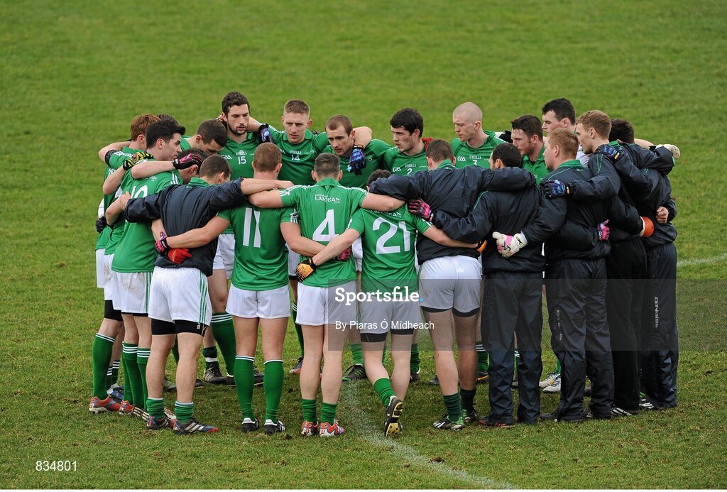 16 February 2014; The Leinster squad in a huddle before the game. M Donnelly Interprovincial Football Championship, Semi-Final, Leinster v Ulster, Páirc Táilteann, Navan, Co. Meath. Picture credit: Piaras Ó Mídheach / SPORTSFILE