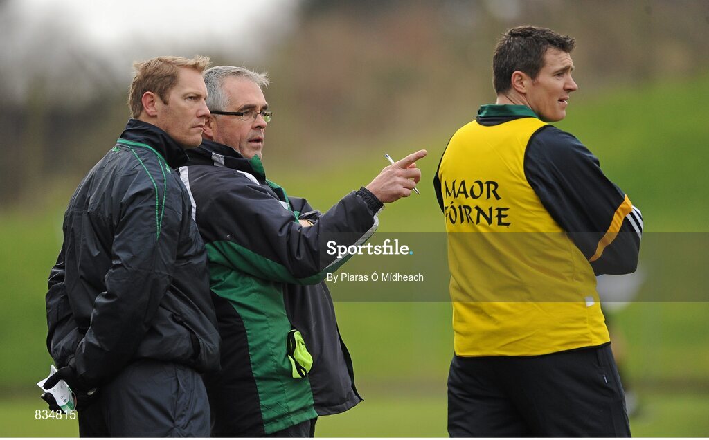 16 February 2014; Leinster manager Luke Dempsey, centre, with selectors Graham Geraghty, left, and Ciarán McManus. M Donnelly Interprovincial Football Championship, Semi-Final, Leinster v Ulster, Páirc Táilteann, Navan, Co. Meath. Picture credit: Piaras Ó Mídheach / SPORTSFILE