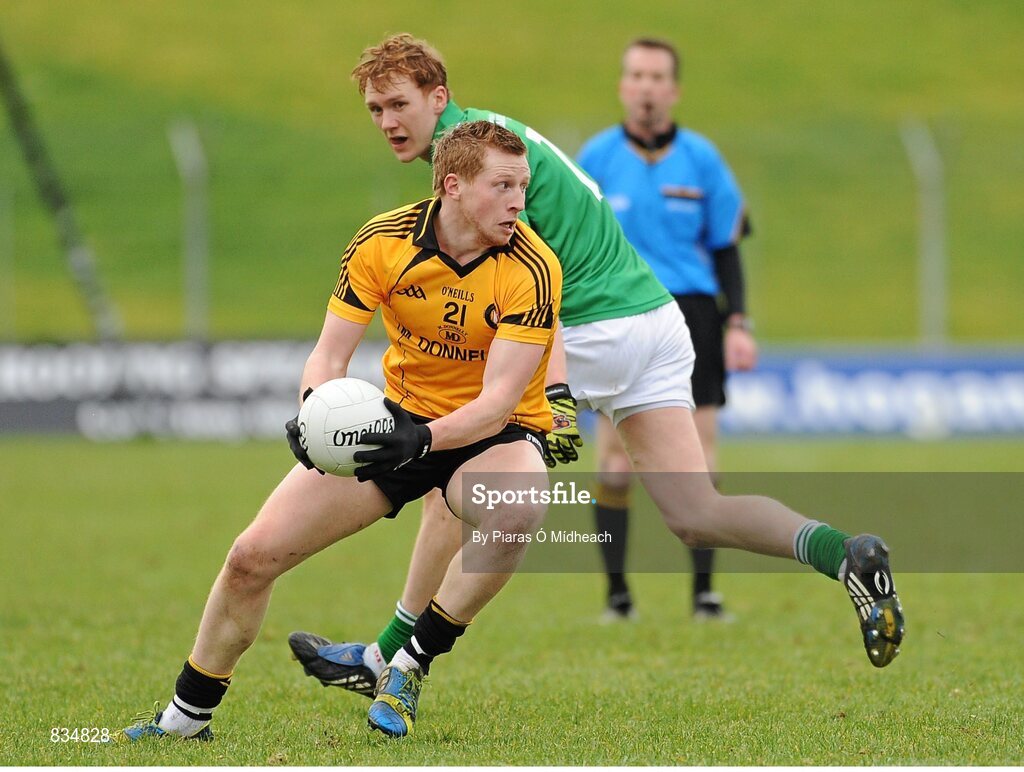 16 February 2014; Kieran Hughes, Ulster, in action against Paul Cribbin, Leinster. M Donnelly Interprovincial Football Championship, Semi-Final, Leinster v Ulster, Páirc Táilteann, Navan, Co. Meath. Picture credit: Piaras Ó Mídheach / SPORTSFILE
