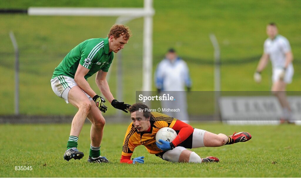 16 February 2014; Colm Cavanagh, Ulster, in action against Paul Cribbin, Leinster. M Donnelly Interprovincial Football Championship, Semi-Final, Leinster v Ulster, Páirc Táilteann, Navan, Co. Meath. Picture credit: Piaras Ó Mídheach / SPORTSFILE