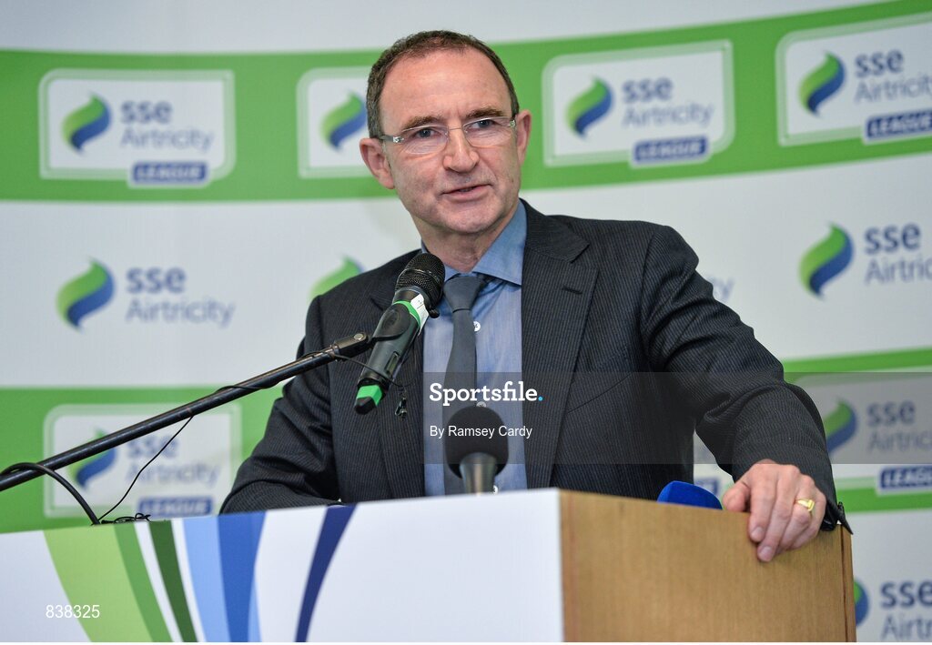 28 February 2014; Republic of Ireland manager Martin O'Neill speaking during the 2014 SSE Airtricity League Launch. Aviva Stadium, Lansdowne Road, Dublin. Picture credit: Ramsey Cardy / SPORTSFILE