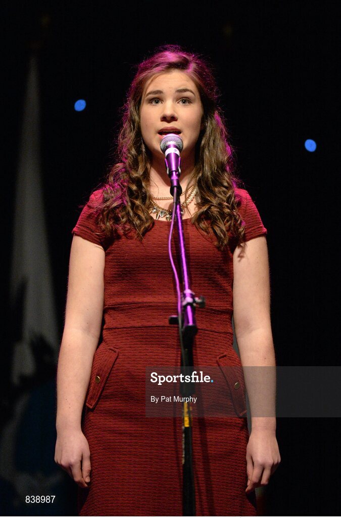 1 March 2014; Louise Gavin, Castlebar MItchels, Co. Mayo, competing in the Solo Singing competition during the All-Ireland Scór na nÓg Championship Finals 2014. TF Royal Theatre, Castlebar, Co. Mayo. Picture credit: Pat Murphy / SPORTSFILE