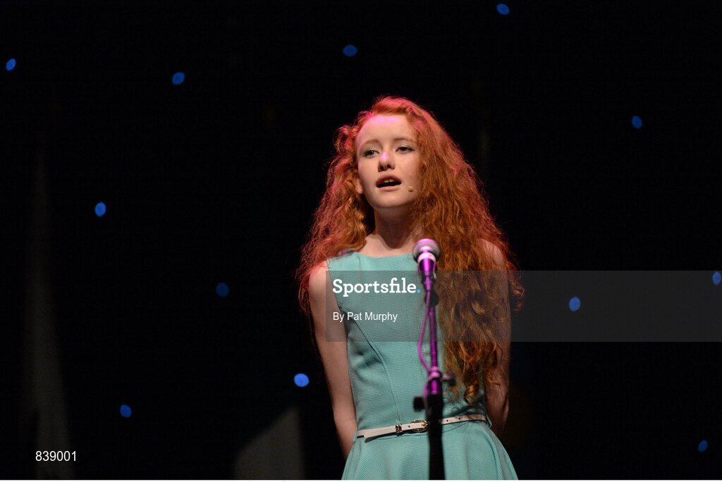 1 March 2014; Molly Donnery, Camros, Co. Laois, on her way to winning the Solo Singing competition during the All-Ireland Scór na nÓg Championship Finals 2014. TF Royal Theatre, Castlebar, Co. Mayo. Picture credit: Pat Murphy / SPORTSFILE