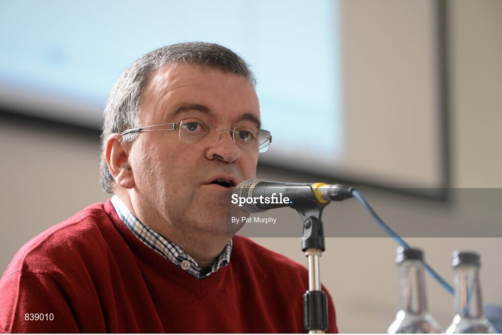 1 March 2014; Quiz Master Sean O Colla during the Trath na gCeist / Table Quiz competition during the All-Ireland Scór na nÓg Championship Finals 2014. GMIT, Castlebar, Co. Mayo. Picture credit: Pat Murphy / SPORTSFILE