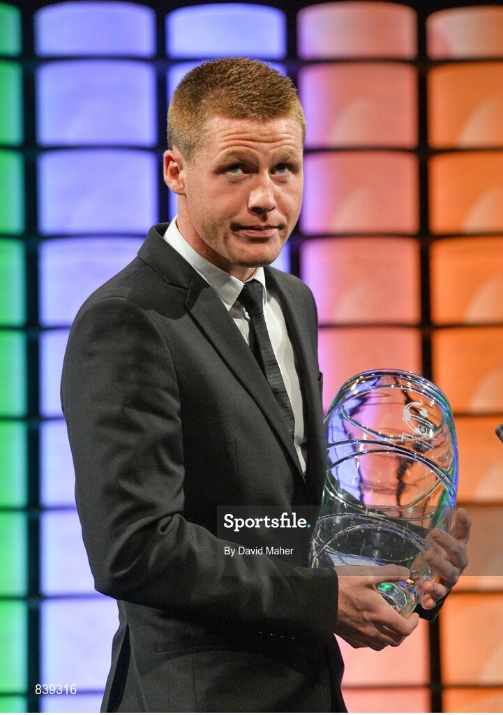 2 March 2014; Republic of Ireland International James McCarthy with the Young International player of the year at the Three FAI International Football Awards. RTE Studios, Donnybrook, Dublin. Picture credit: David Maher / SPORTSFILE