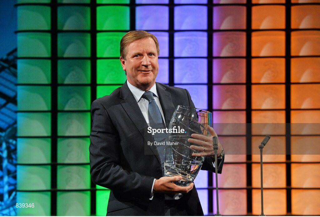 2 March 2014; Ronnie Whelan with his Hall of Fame award at the Three FAI International Football Awards. RTE Studios, Donnybrook, Dublin. Picture credit: David Maher / SPORTSFILE