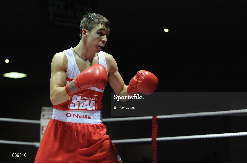 28 February 2014; Michael Conlon, St. John Bosco Boxing Club, during his 56Kg bout against Barry Walsh, St. Colmans Boxing Club. 2014 National Elite Boxing Championship Finals, National Stadium, Dublin. Picture credit: Ray Lohan / SPORTSFILE