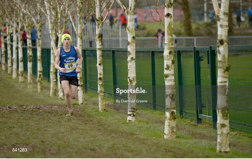 8 March 2014; Kevin Mulcaire, St. Flannan's Ennis, on his way to winning the Intermediate boys 5000m race during the Aviva All-Ireland Schools Cross Country Championships. Cork IT, Bishopstown, Cork. Picture credit: Diarmuid Greene / SPORTSFILE