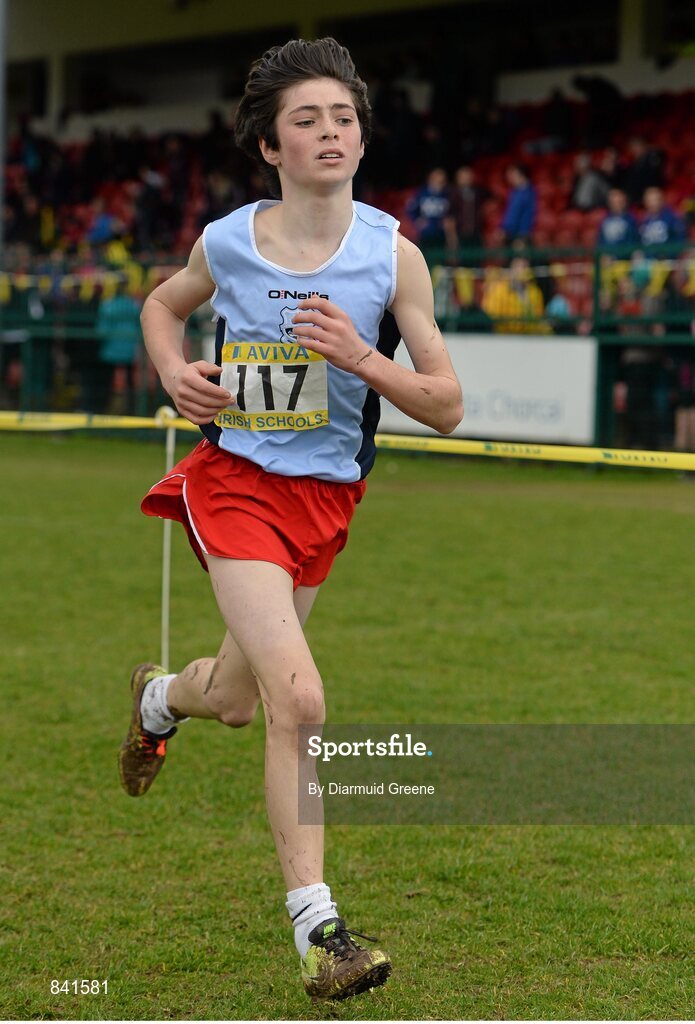 8 March 2014; Darragh McElhinney, Colaiste Pobail Bheanntrai, on his way to finishing in second place during the Minor Boys 2500m race at the Aviva All-Ireland Schools Cross Country Championships. Cork IT, Bishopstown, Cork. Picture credit: Diarmuid Greene / SPORTSFILE