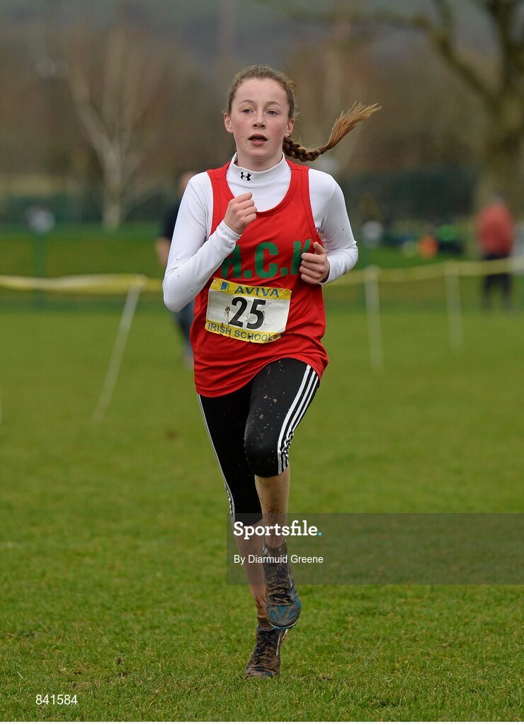 8 March 2014; Sarah Healy, Holy Child Killiney, on her way to winning the Minor Girls 2000m race during the Aviva All-Ireland Schools Cross Country Championships. Cork IT, Bishopstown, Cork. Picture credit: Diarmuid Greene / SPORTSFILE