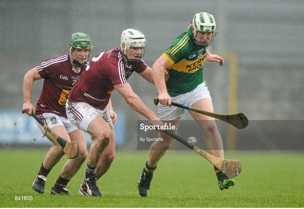 9 March 2014; Padriag Boyle, Kerry, in action against Philip Reilly, left, and Davy Gavin, Westmeath. Allianz Hurling League Division 2A Round 3, Westmeath v Kerry, Cusack Park, Mullingar, Co. Westmeath. Photo by Sportsfile