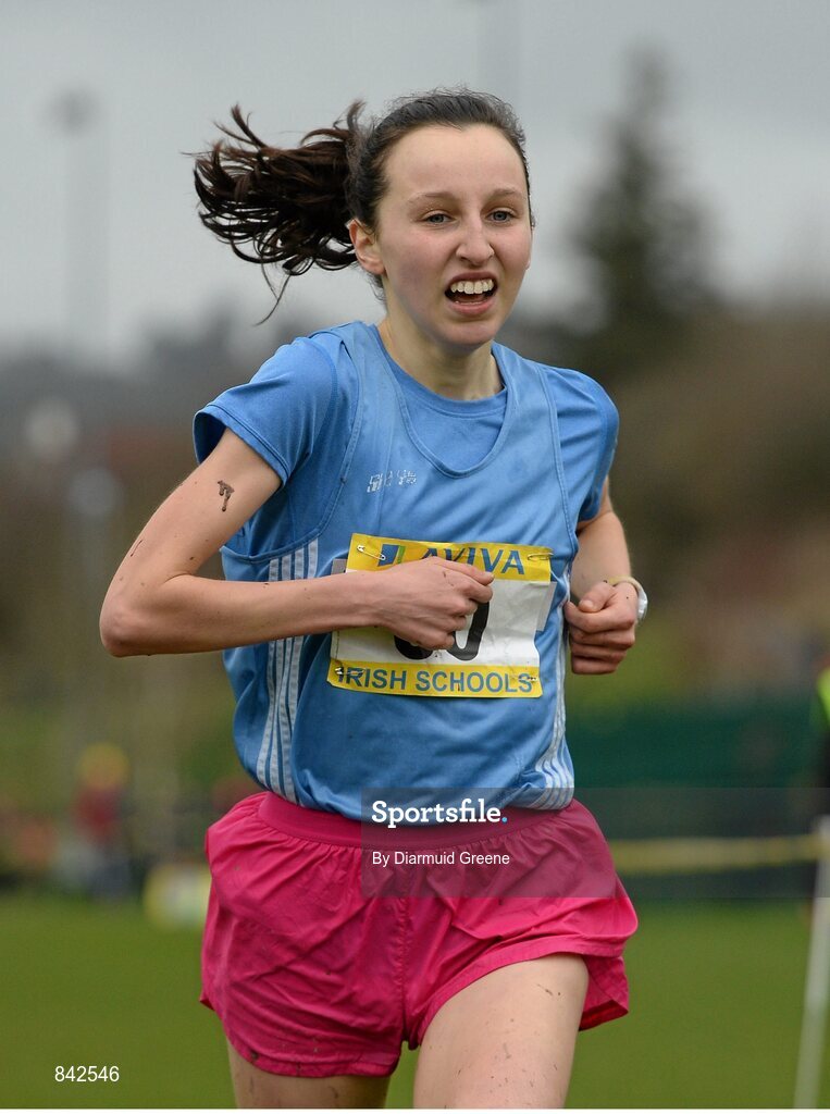 8 March 2014; Deirdre Healy, Institute of Education Dublin, on her way to finishing third in the Senior Girls 2500m race during the Aviva All-Ireland Schools Cross Country Championships. Cork IT, Bishopstown, Cork. Picture credit: Diarmuid Greene / SPORTSFILE