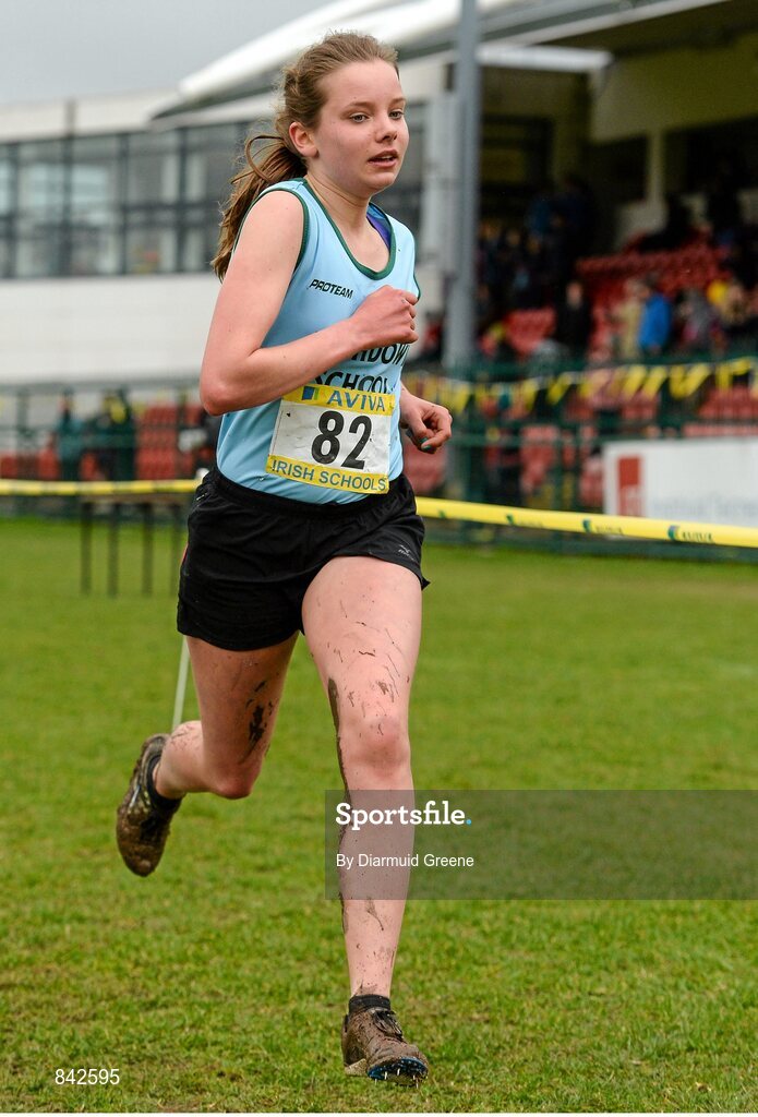 8 March 2014; Isabelle Dollan, Rathdown School Dublin, on her way to finishing in seventh place in the Senior Girls 2500m race during the Aviva All-Ireland Schools Cross Country Championships. Cork IT, Bishopstown, Cork. Picture credit: Diarmuid Greene / SPORTSFILE