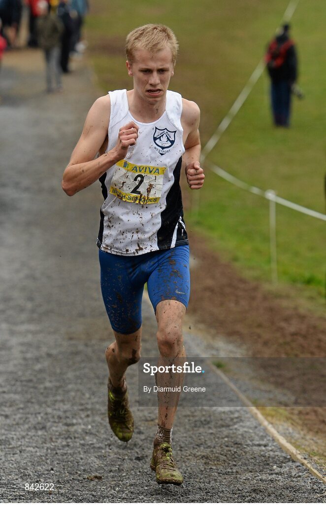 8 March 2014; David Harper, Rice College Westport, on his way to finishing third in the Senior Boys 6500m race at the Aviva All-Ireland Schools Cross Country Championships. Cork IT, Bishopstown, Cork. Picture credit: Diarmuid Greene / SPORTSFILE