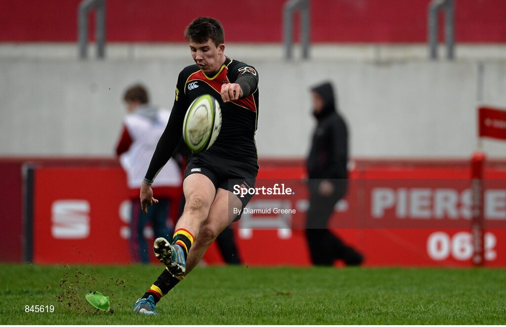 17 March 2014; David O'Mahony, Ardscoil Ris, kicks a conversion. SEAT Munster Schools Senior Cup Final, Ard Scoil Ris v Crescent College Comprehensive, Thomond Park, Limerick. Picture credit: Diarmuid Greene / SPORTSFILE
