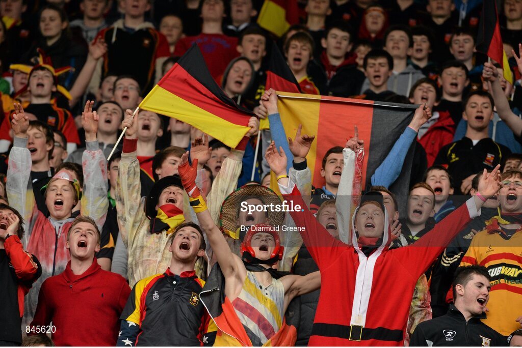 17 March 2014 Ardscoil Ris supporters during the game. SEAT Munster Schools Senior Cup Final, Ard Scoil Ris v Crescent College Comprehensive, Thomond Park, Limerick. Picture credit: Diarmuid Greene / SPORTSFILE