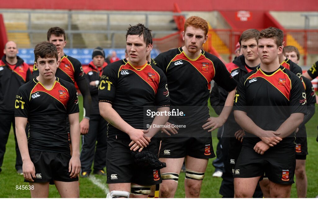 17 March 2014; Ardscoil Ris players look on during the cup presentation to Crescent College. SEAT Munster Schools Senior Cup Final, Ard Scoil Ris v Crescent College Comprehensive, Thomond Park, Limerick. Picture credit: Diarmuid Greene / SPORTSFILE