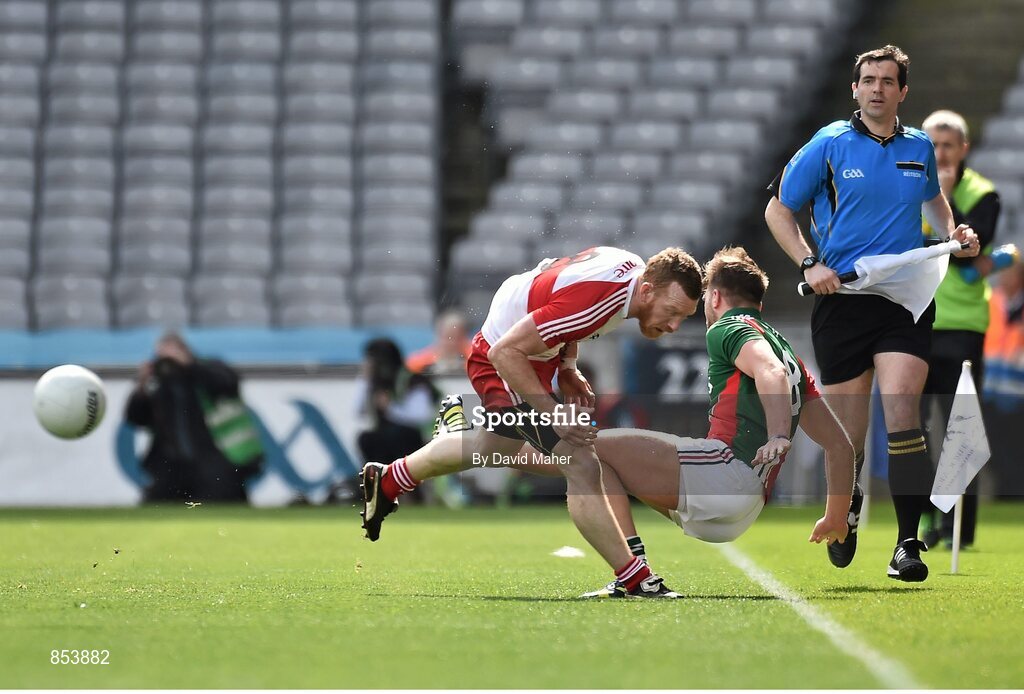 13 April 2014; Fergal Doherty, Derry, tackles Aidan O'Shea, Mayo. Allianz Football League Division 1 Semi-Final, Derry v Mayo, Croke Park, Dublin. Picture credit: David Maher / SPORTSFILE