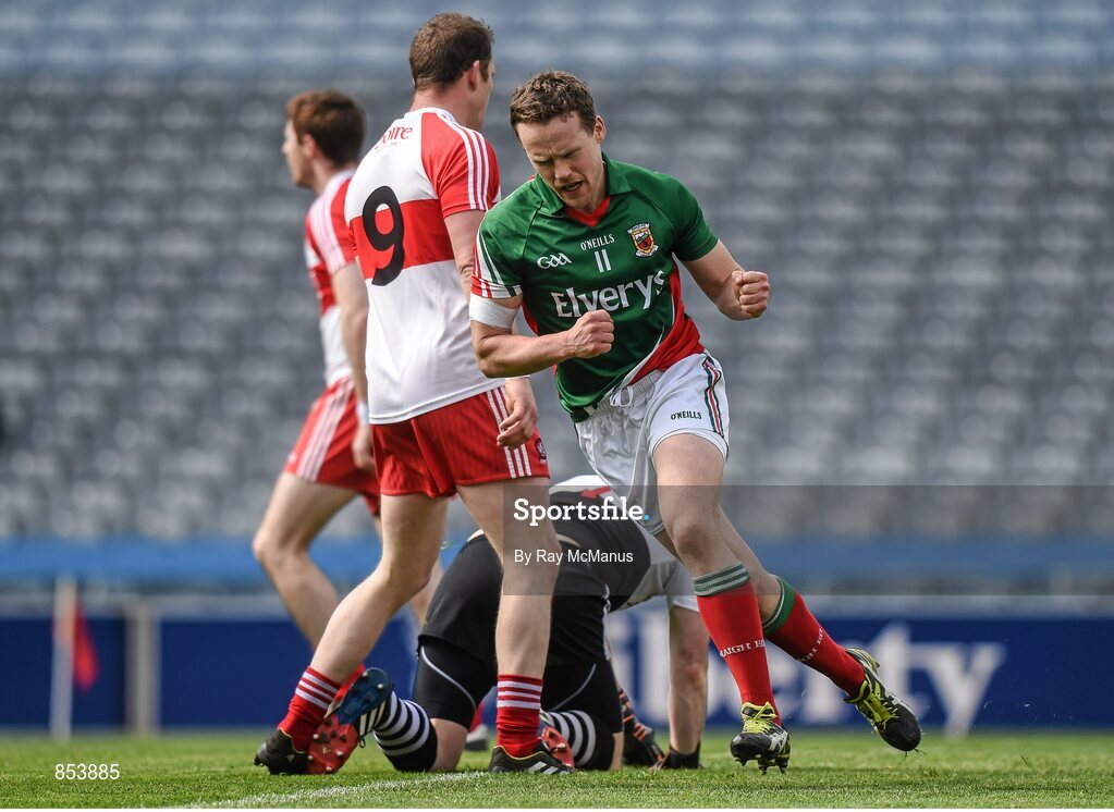 13 April 2014; Mayo captain Andy Moran celebrates scoring a goal in the first half. Allianz Football League Division 1 Semi-Final, Derry v Mayo, Croke Park, Dublin. Picture credit: Ray McManus / SPORTSFILE
