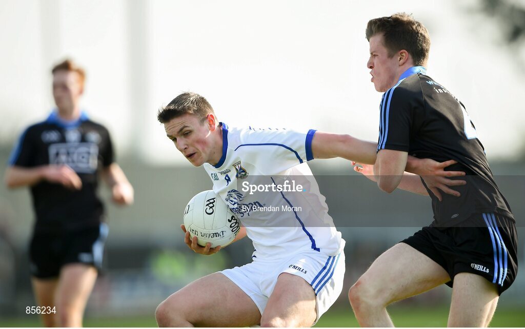 19 April 2014; Liam Buchanan, Cavan, holds off the challenge of Robert McDaid, Dublin. Cadbury GAA Football U21 Championship Semi-Final, Cavan v Dublin, O'Moore Park, Portlaoise, Co. Laois. Picture credit: Brendan Moran / SPORTSFILE