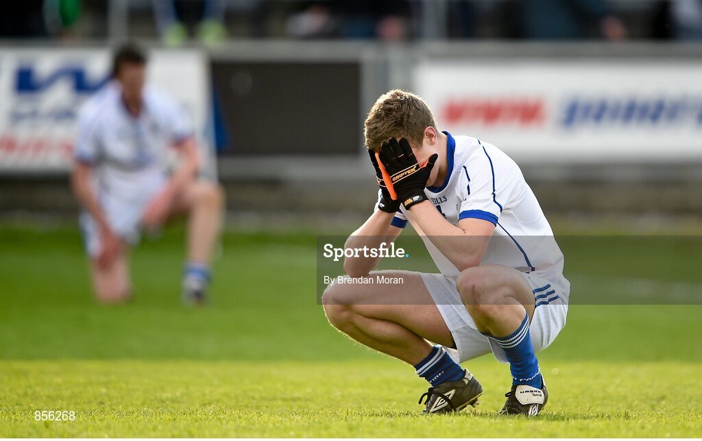 19 April 2014; A dejected Padraig Faulkner, Cavan, after the final whistle. Cadbury GAA Football U21 Championship Semi-Final, Cavan v Dublin, O'Moore Park, Portlaoise, Co. Laois. Picture credit: Brendan Moran / SPORTSFILE