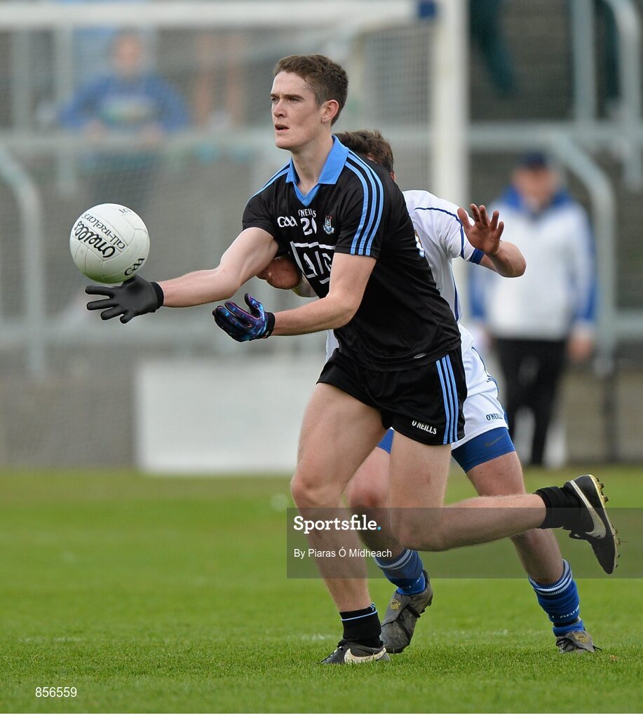 19 April 2014; Brian Fenton, Dublin, in action against Conor P. Moynagh, Cavan. Cadbury GAA Football U21 Championship Semi-Final, Cavan v Dublin, O'Moore Park, Portlaoise, Co. Laois. Picture credit: Piaras Ó Mídheach / SPORTSFILE