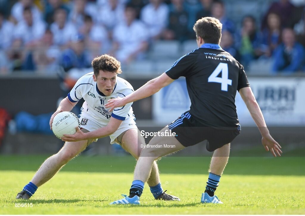 19 April 2014; Enda Flanagan, Cavan, in action against Robert McDaid, Dublin. Cadbury GAA Football U21 Championship Semi-Final, Cavan v Dublin, O'Moore Park, Portlaoise, Co. Laois. Picture credit: Brendan Moran / SPORTSFILE