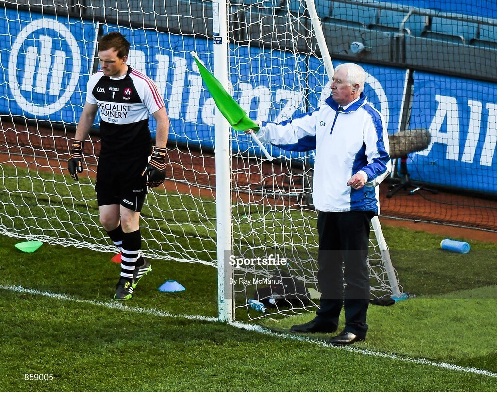 27 April 2014; An umpire waves the green flag to confirm Bernard Borgan's goal. Allianz Football League Division 1 Final, Dublin v Derry, Croke Park, Dublin. Picture credit: Ray McManus / SPORTSFILE