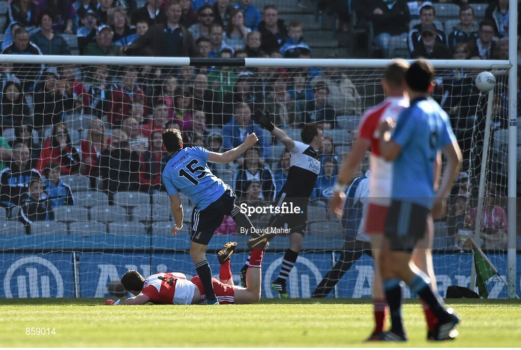 27 April 2014; Bernard Brogan, Dublin, shoots to score his side's first goal. Allianz Football League Division 1 Final, Dublin v Derry, Croke Park, Dublin. Picture credit: David Maher / SPORTSFILE