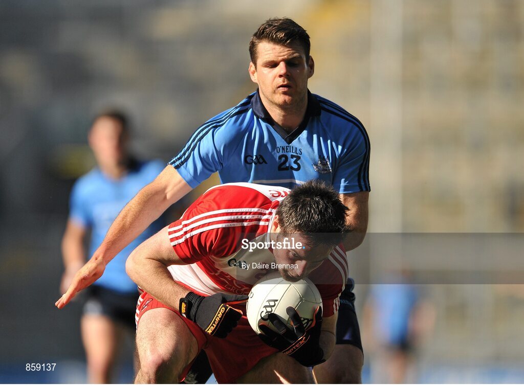 27 April 2014; Ois’n Duffy, Derry, in action against Kevin McManamon, Dublin. Allianz Football League Division 1 Final, Dublin v Derry, Croke Park, Dublin. Picture credit: Dáire Brennan / SPORTSFILE