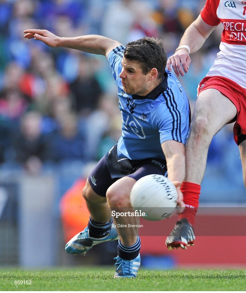 27 April 2014; Kevin McManamon, Dublin, scores his side's second goal. Allianz Football League Division 1 Final, Dublin v Derry, Croke Park, Dublin. Picture credit: Dáire Brennan / SPORTSFILE