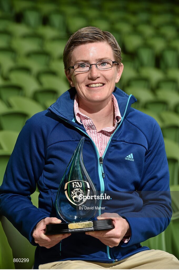 30 April 2014; Sylvia Gee, winner of the Bus Eireann Women’s National League Hall of Fame Award. Bus Eireann Women’s National League Awards, Aviva Stadium, Lansdowne Road, Dublin. Picture credit: David Maher / SPORTSFILE