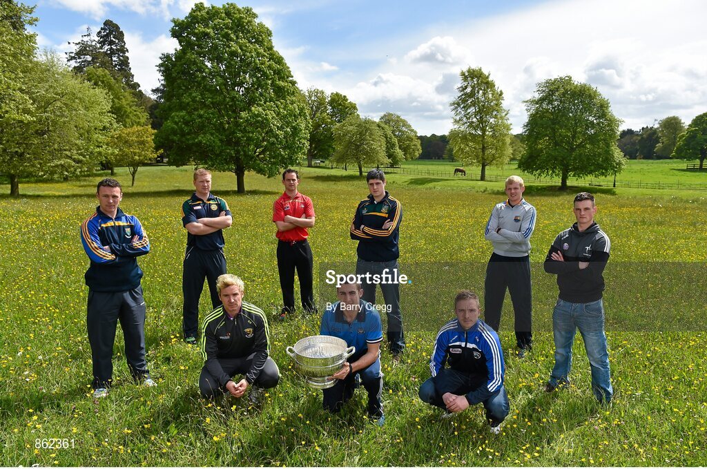 6 May 2014; Senior footballers, back row, from left to right, Leighton Glynn, Wicklow, Alan Mulhall, Offaly, Shane Lennon, Louth, Conor Gillespie, Meath, Patrick Collum, Longford and Eoin Doyle, Kildare. Front row, from left to right, Ben Brosnan, Wexford, James McCarthy, Dublin, and Ross Munnelly, Laois, in attendance at the launch of the Leinster Senior Championships 2014. Farmleigh House, Dublin. Picture credit: Barry Cregg / SPORTSFILE