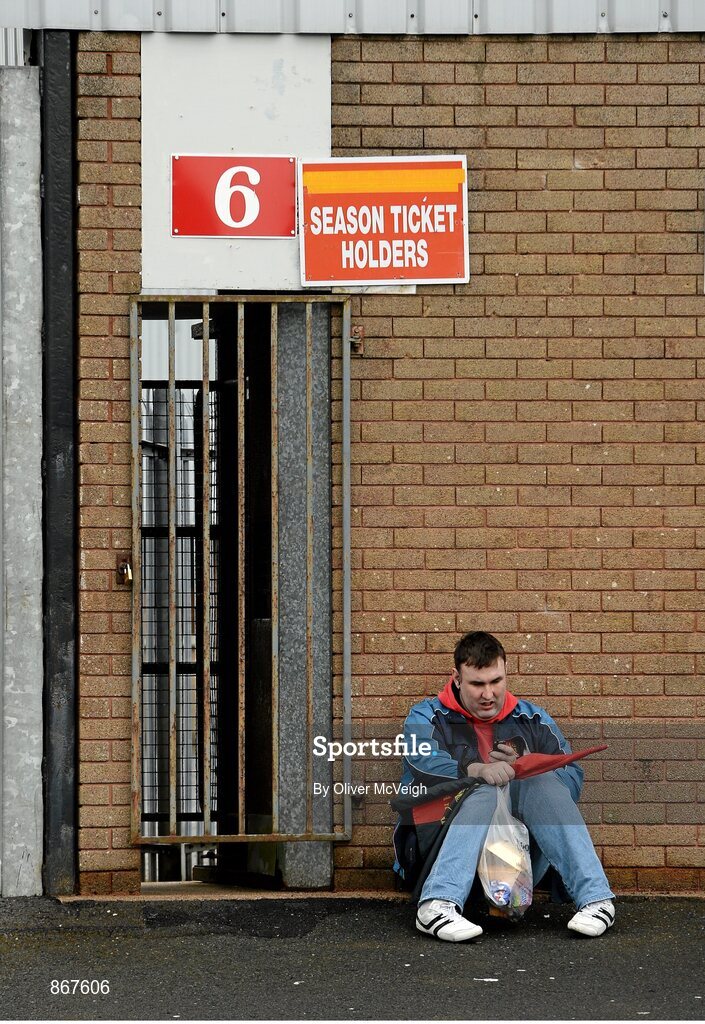 18 May 2014; A supporter waits for the turnstiles to open. Ulster GAA Football Senior Championship Preliminary Round, Tyrone v Down, Healy Park, Omagh, Co. Tyrone. Picture credit: Oliver McVeigh / SPORTSFILE