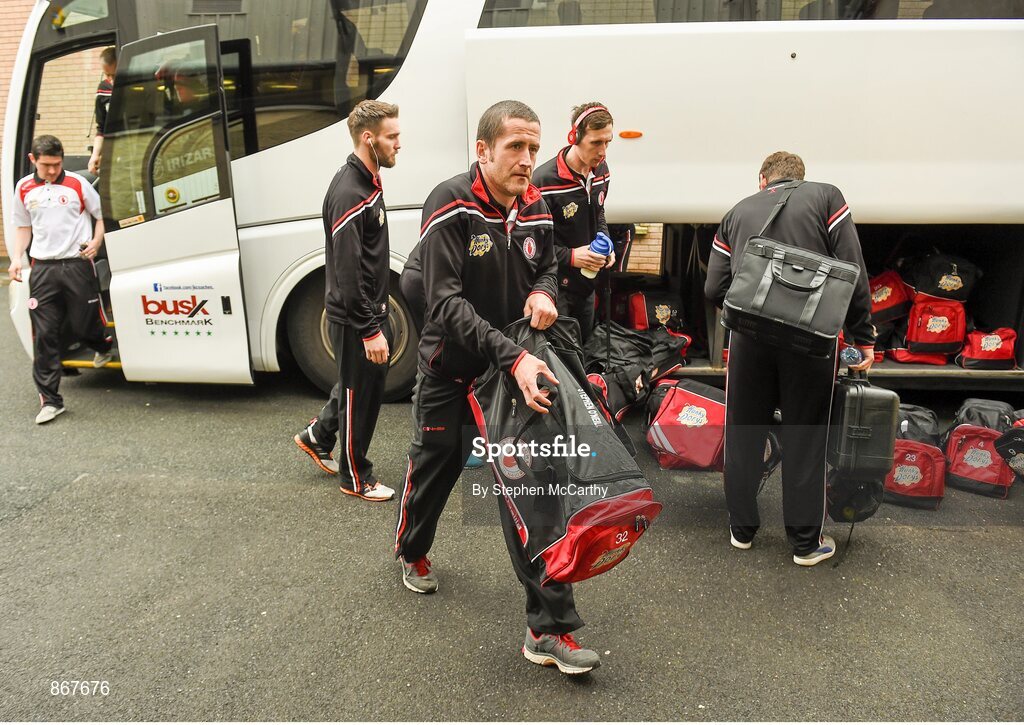 18 May 2014; Tyrone's Stephen O'Neill arrives ahead of the game. Ulster GAA Football Senior Championship Preliminary Round, Tyrone v Down, Healy Park, Omagh, Co. Tyrone. Picture credit: Stephen McCarthy / SPORTSFILE