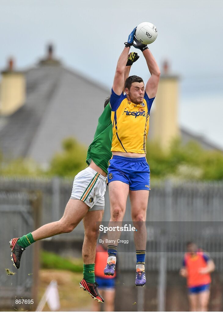 18 May 2014; Donie Shine, Roscommon, in action against Donal Wrynn, Leitrim. Connacht GAA Football Senior Championship Quarter-Final, Roscommon v Leitrim, Dr. Hyde Park, Roscommon. Picture credit: Barry Cregg / SPORTSFILE